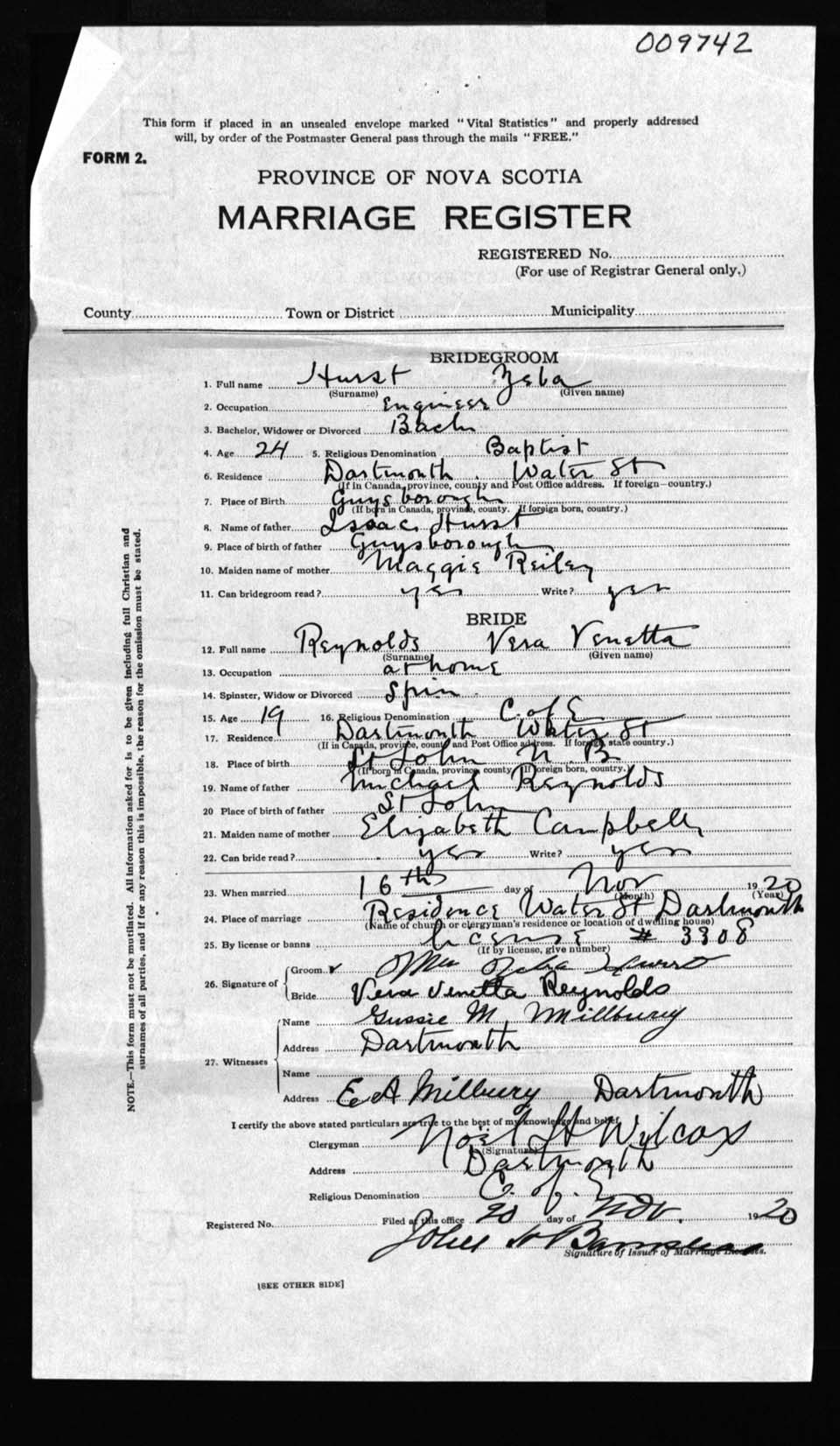 Registration: Year: 1920 number: 9742