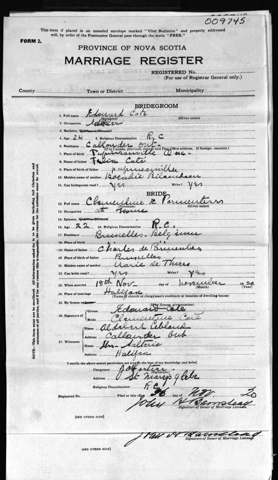 Registration: Year: 1920 number: 9745