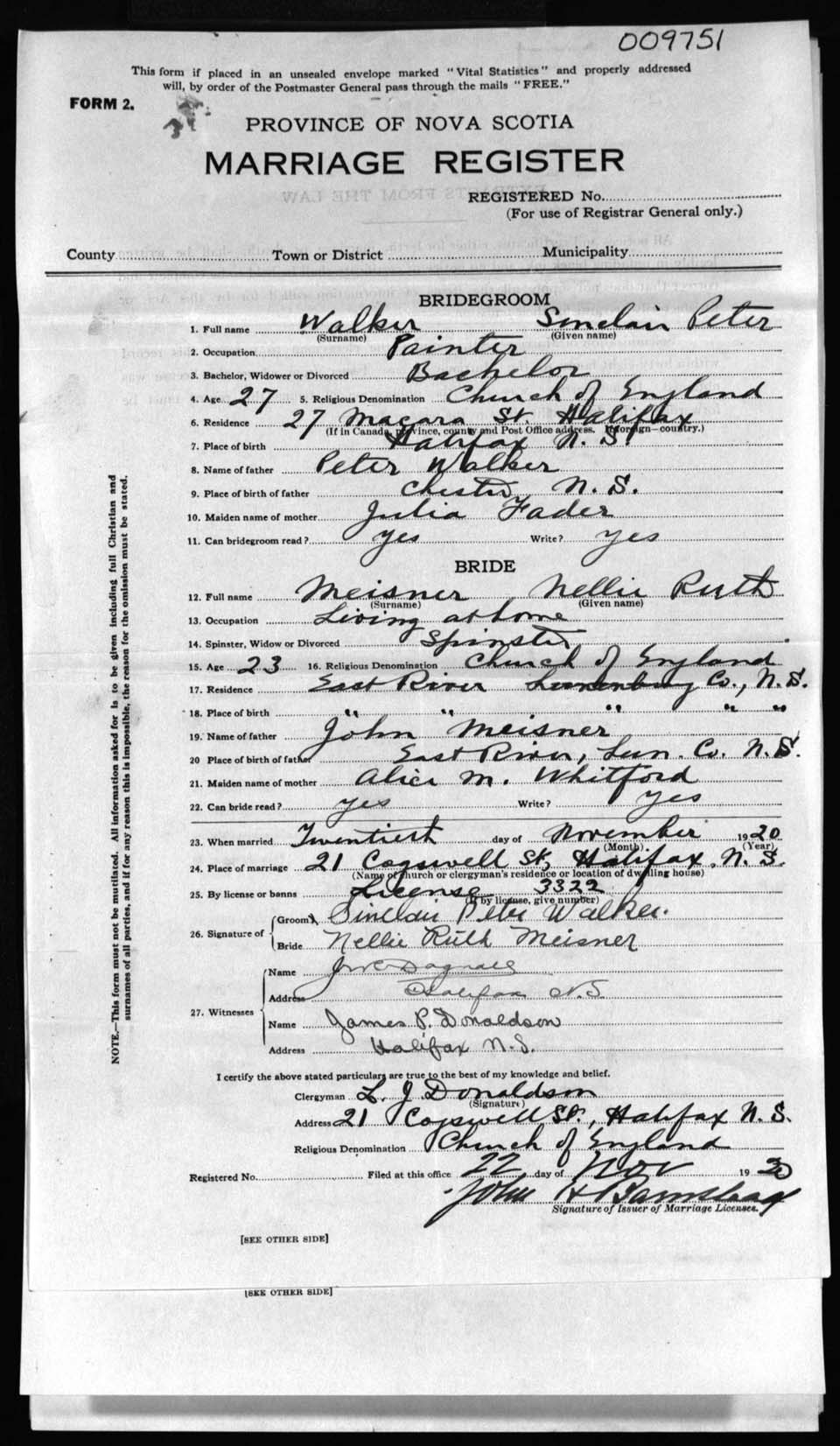 Registration: Year: 1920 number: 9751