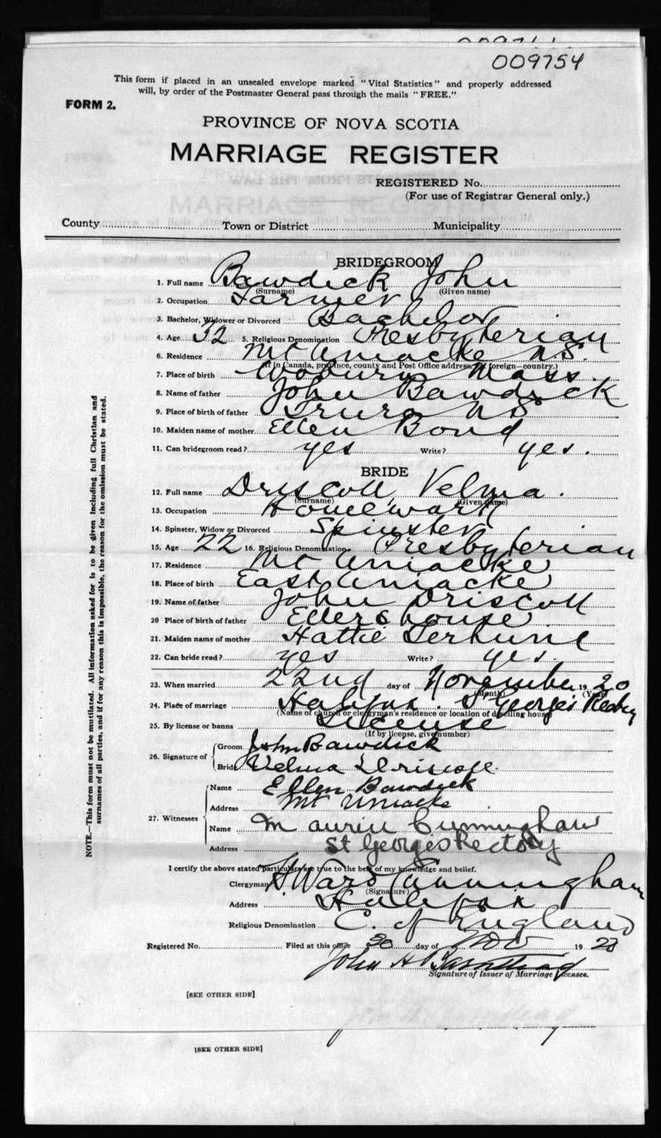Registration: Year: 1920 number: 9754