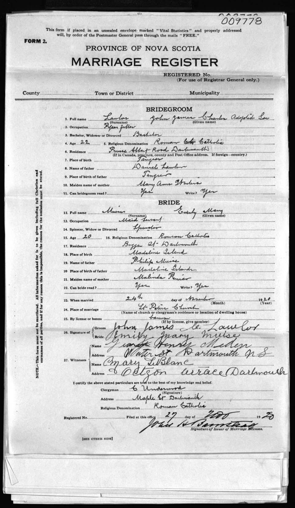 Registration: Year: 1920 number: 9778