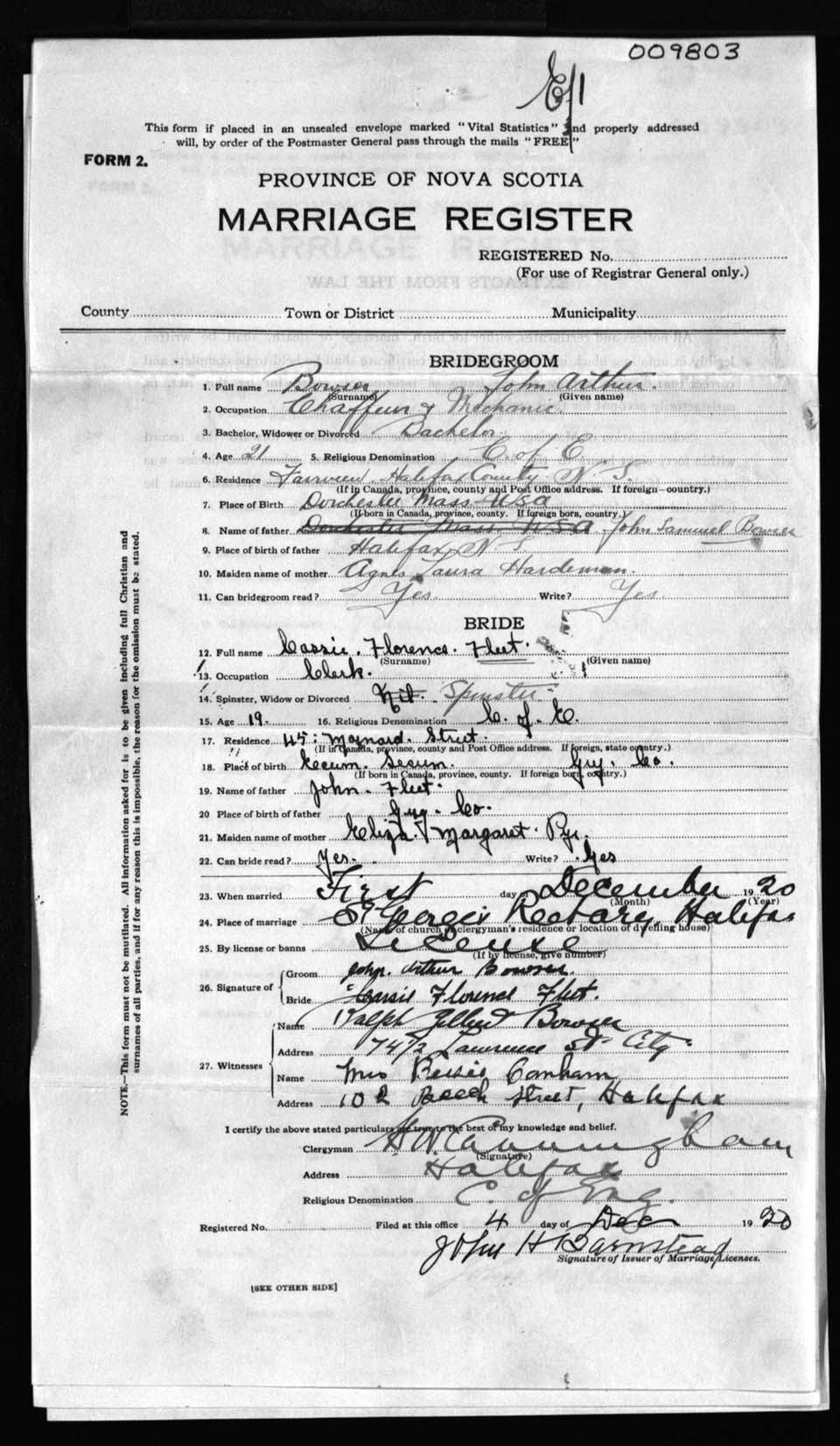 Registration: Year: 1920 number: 9803