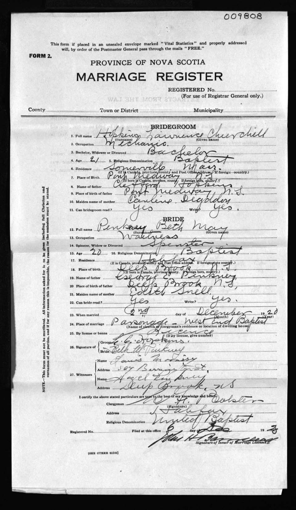 Registration: Year: 1920 number: 9808