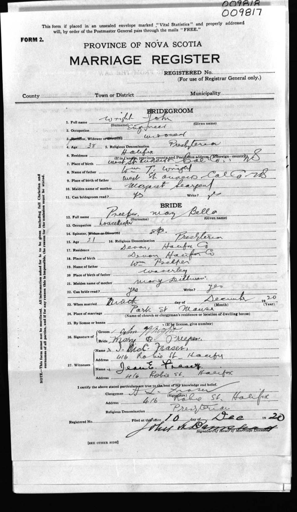 Registration: Year: 1920 number: 9817