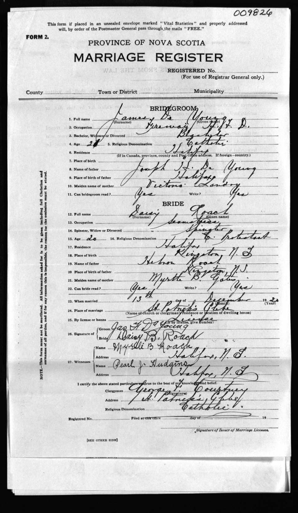 Registration: Year: 1920 number: 9826