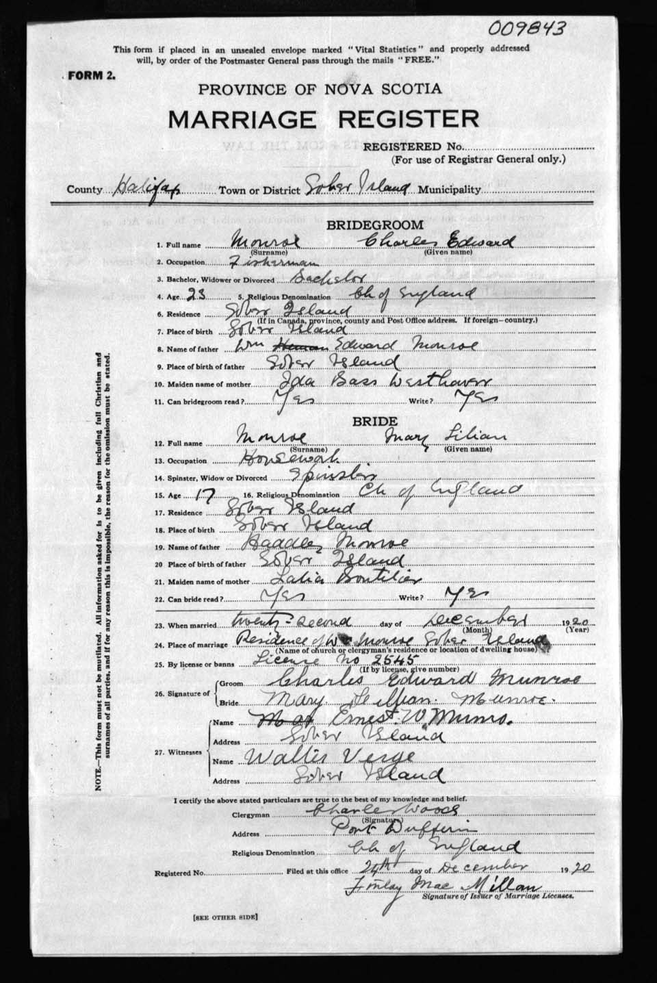 Registration: Year: 1920 number: 9843