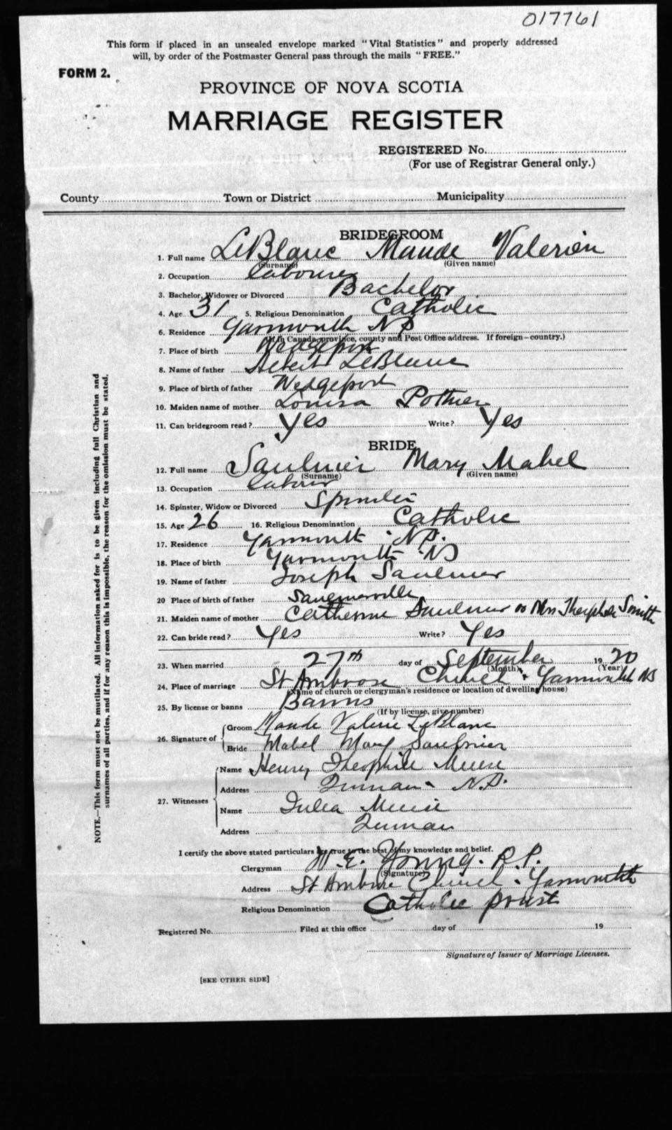 Registration: Year: 1920 number: 17761