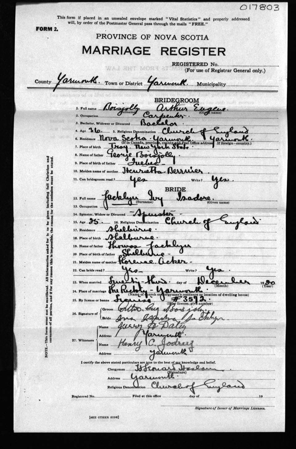 Registration: Year: 1920 number: 17803