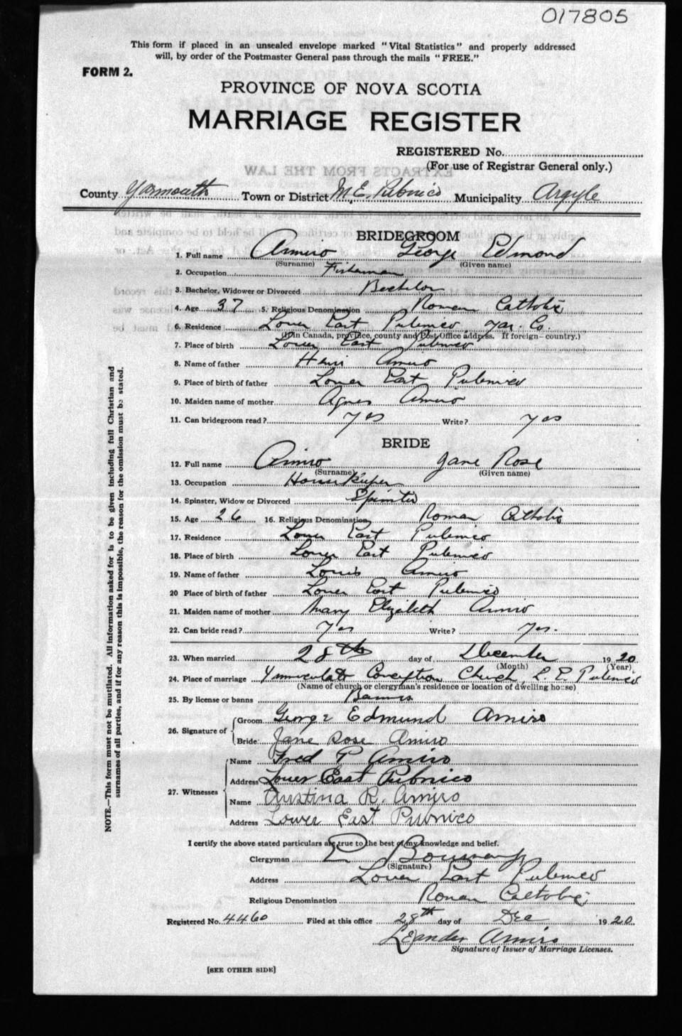 Registration: Year: 1920 number: 17805