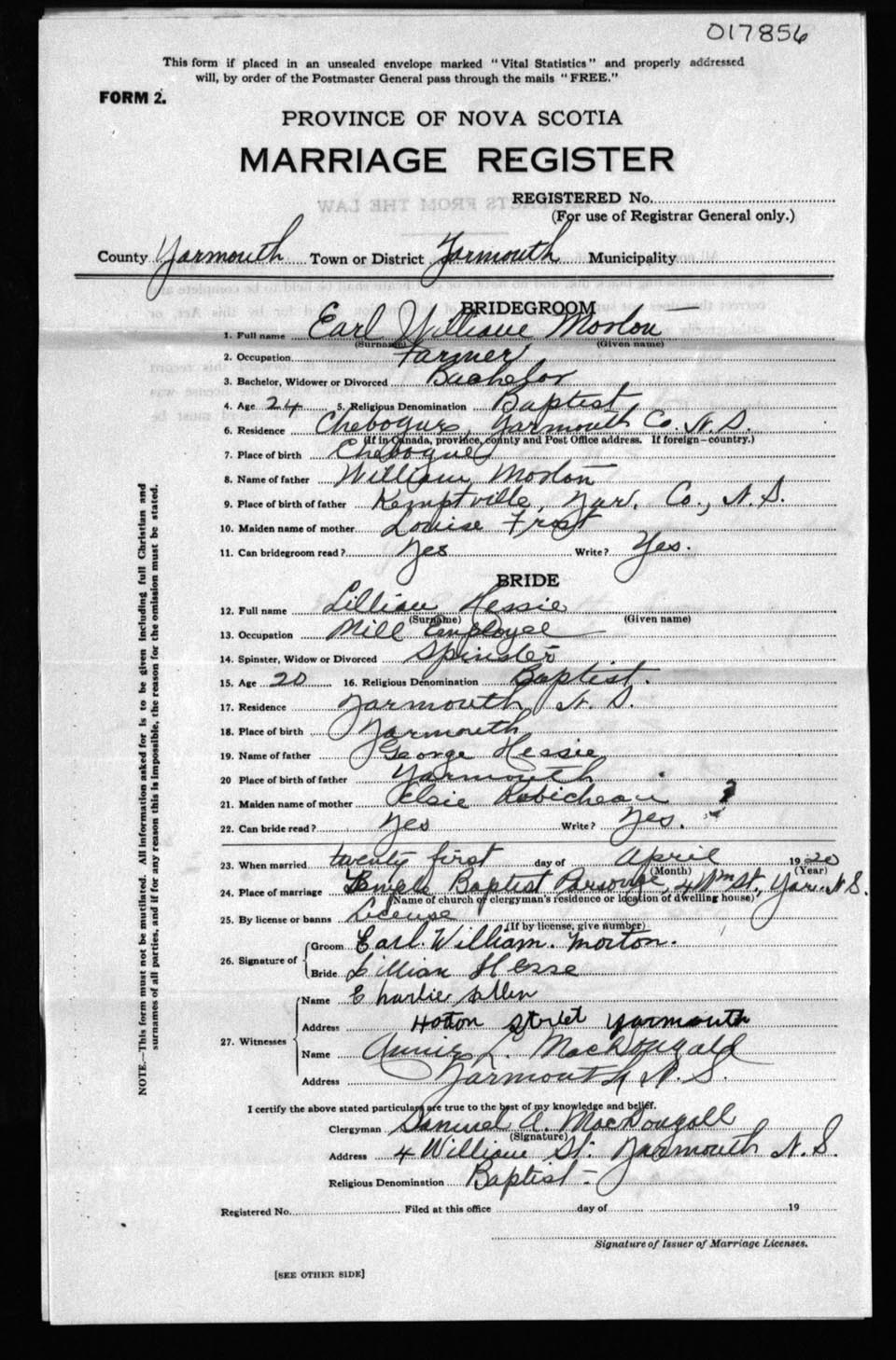 Registration: Year: 1920 number: 17856