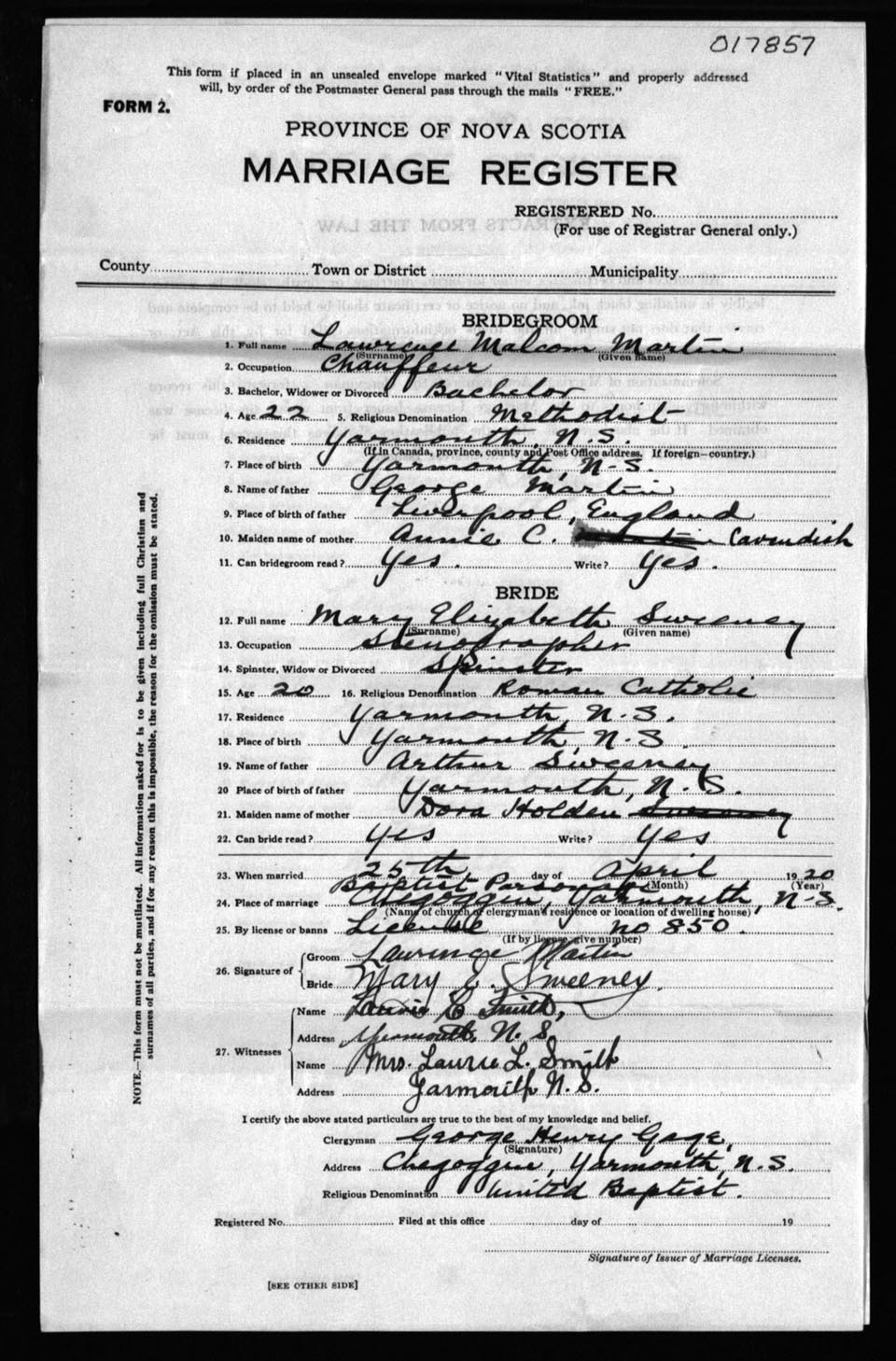 Registration: Year: 1920 number: 17857