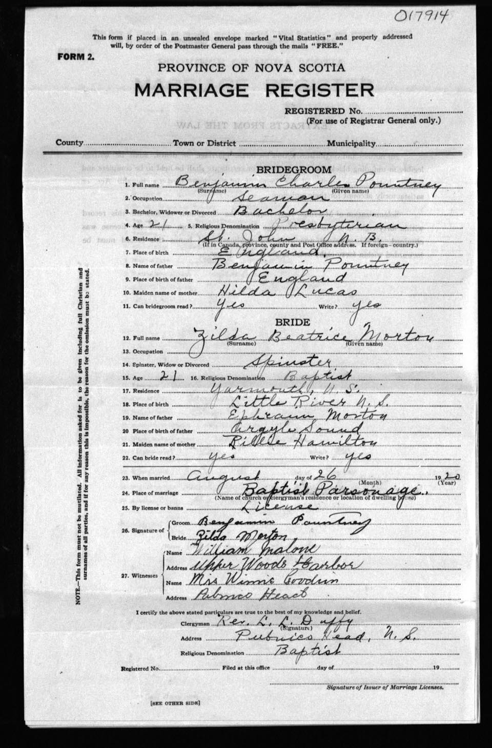 Registration: Year: 1920 number: 17914