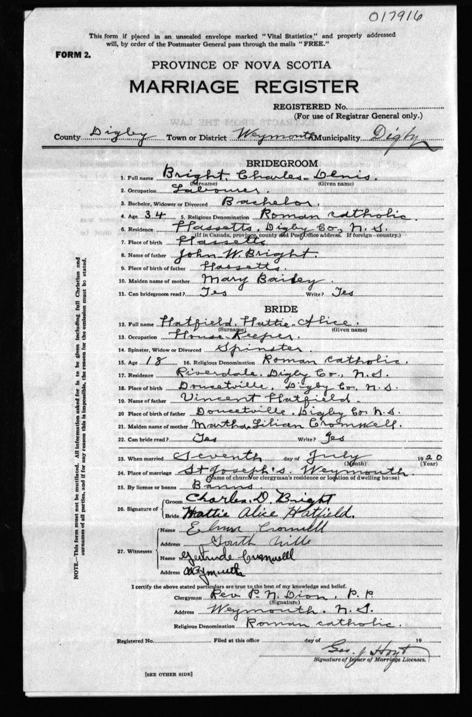 Registration: Year: 1920 number: 17916