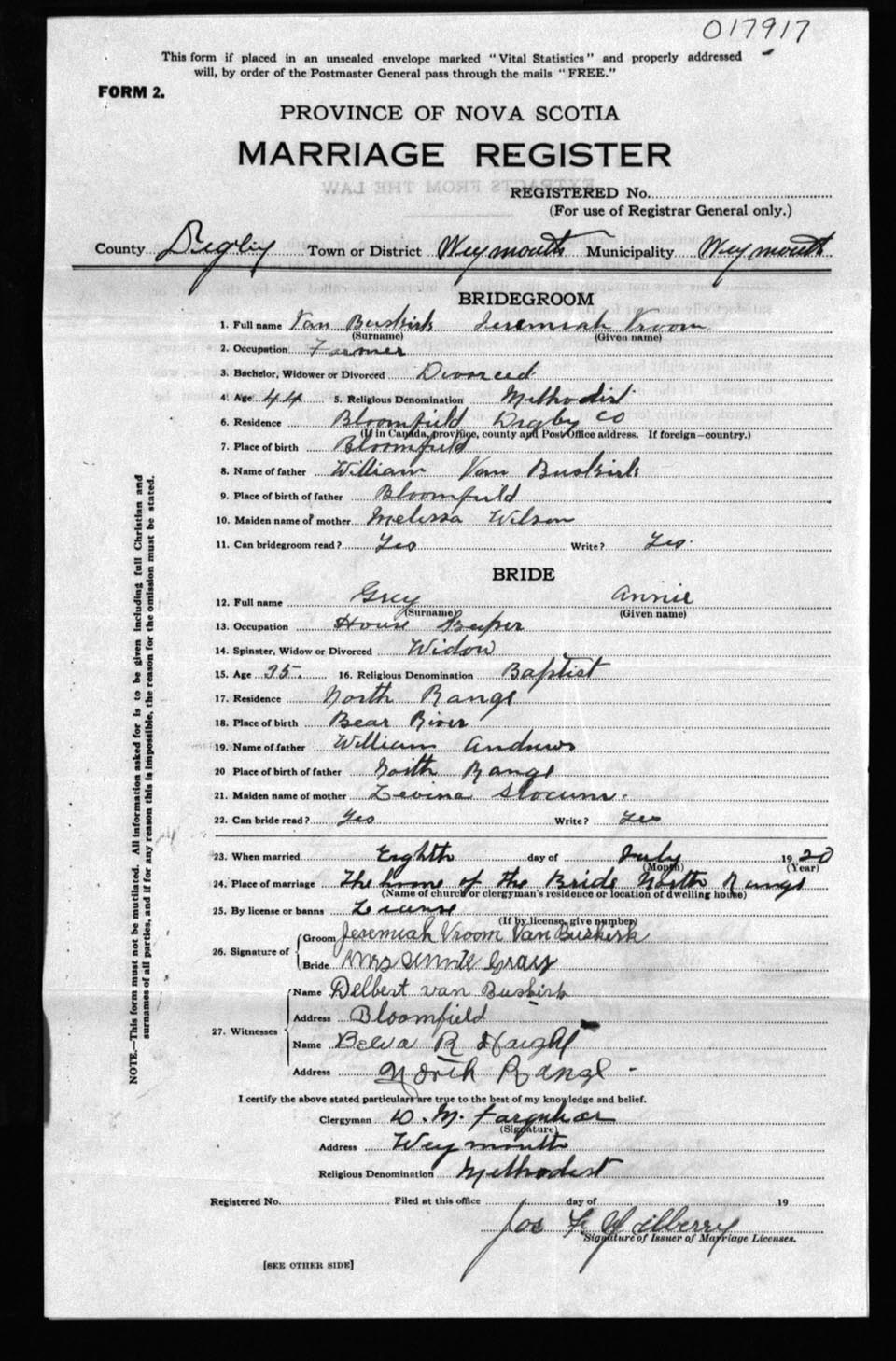 Registration: Year: 1920 number: 17917
