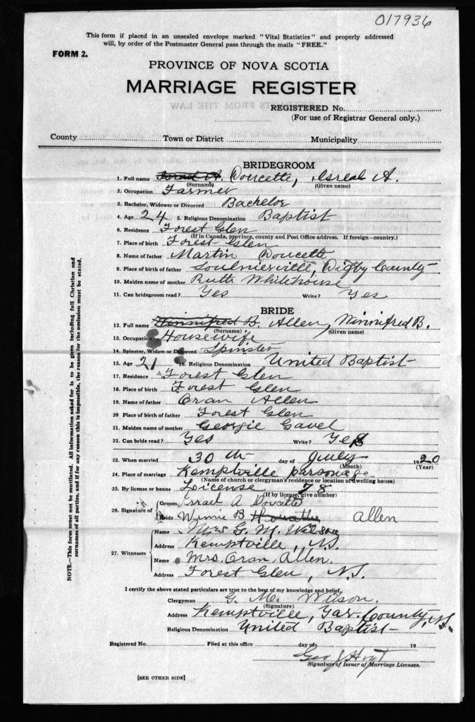 Registration: Year: 1920 number: 17936