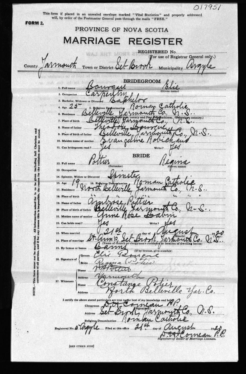 Registration: Year: 1920 number: 17951