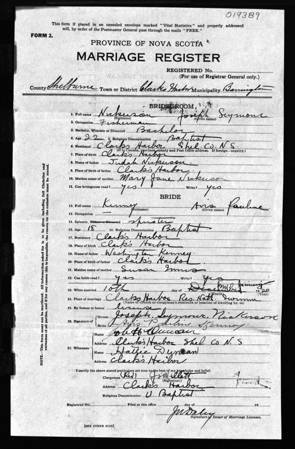Registration: Year: 1920 number: 19389