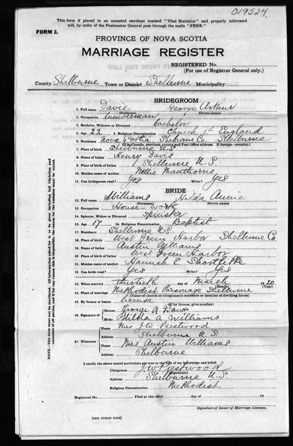 Registration: Year: 1920 number: 19524
