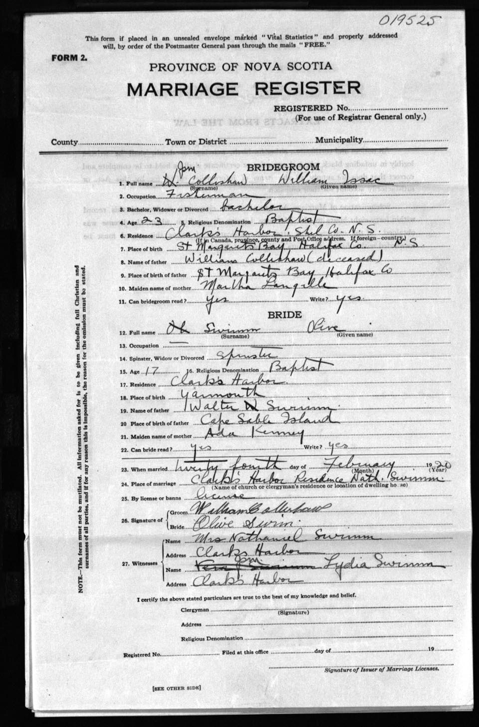 Registration: Year: 1920 number: 19525