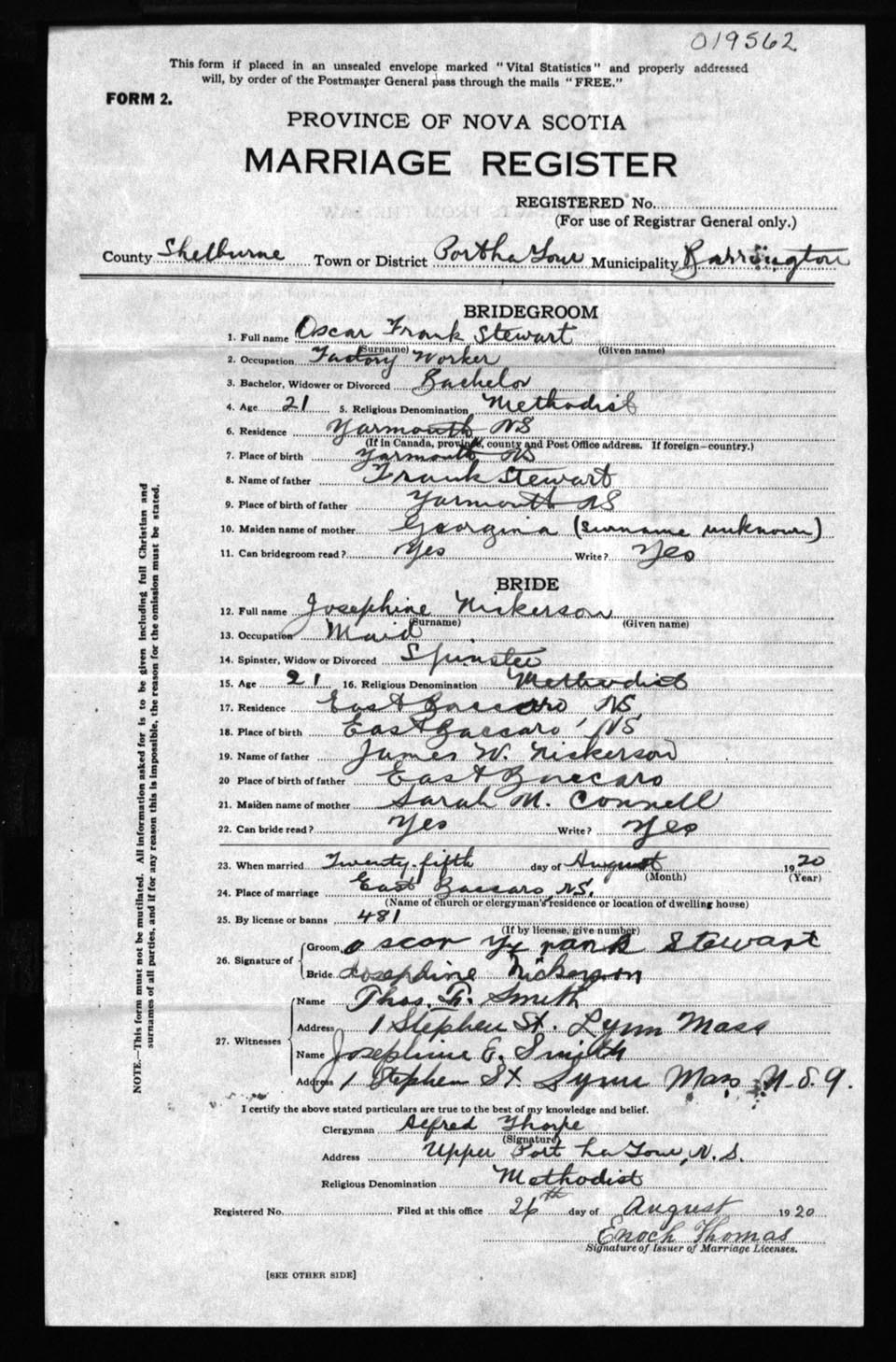 Registration: Year: 1920 number: 19562