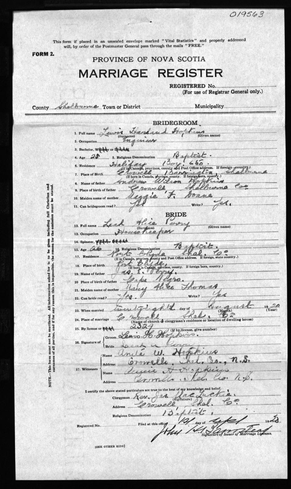 Registration: Year: 1920 number: 19563