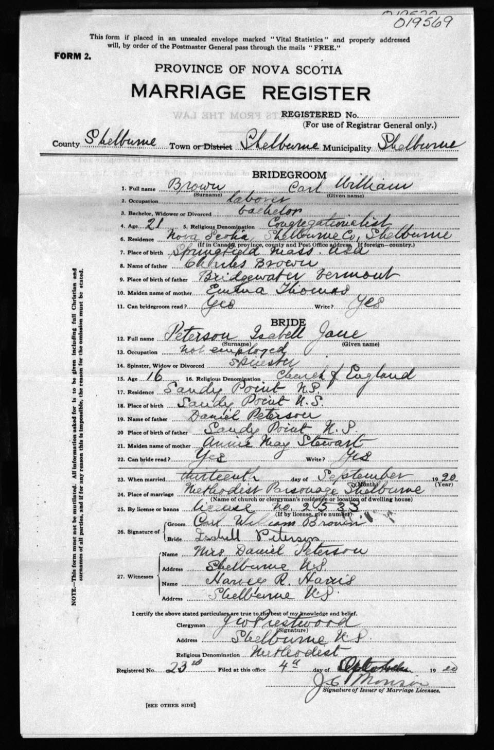 Registration: Year: 1920 number: 19569