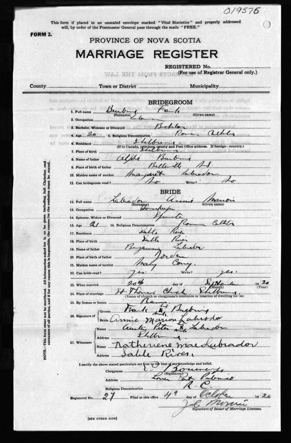 Registration: Year: 1920 number: 19576