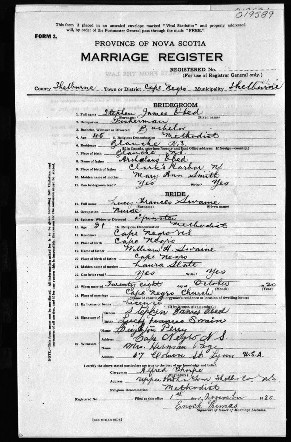 Registration: Year: 1920 number: 19589