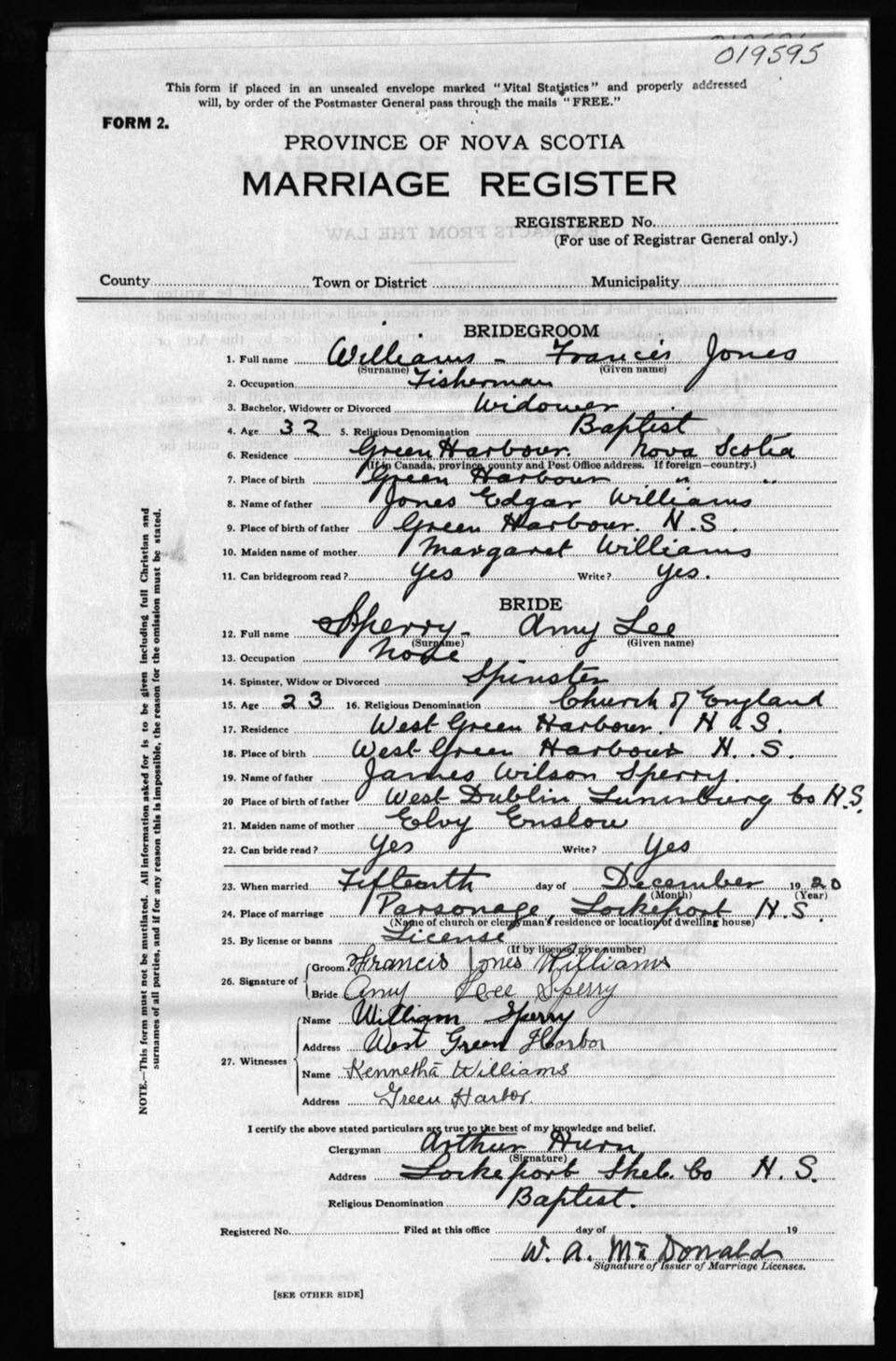 Registration: Year: 1920 number: 19595