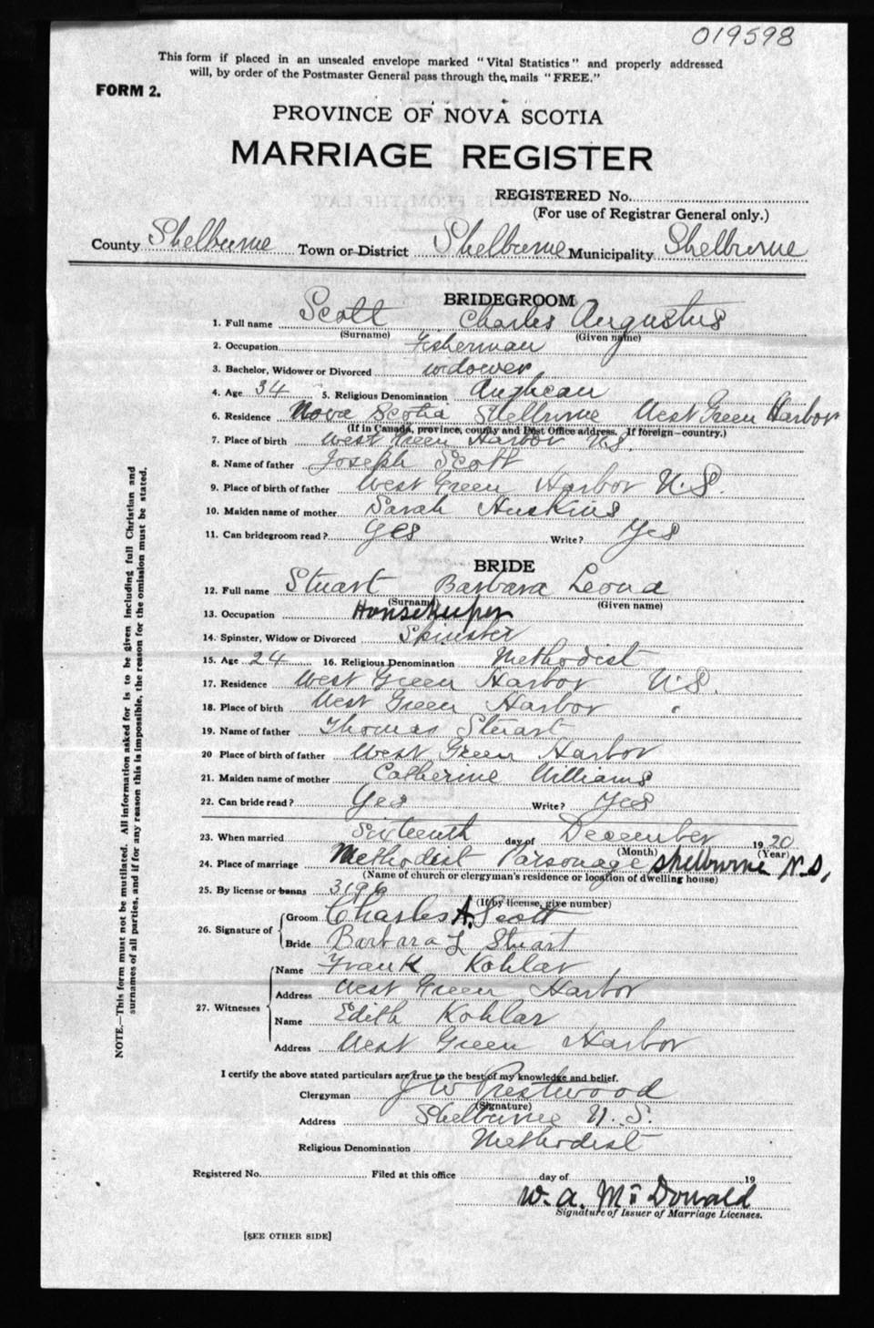 Registration: Year: 1920 number: 19598