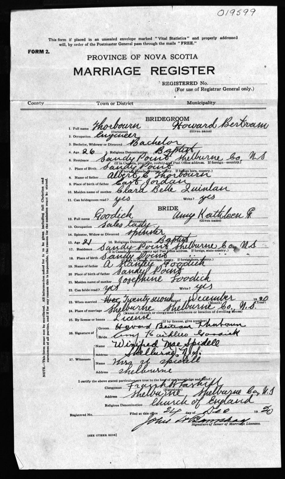 Registration: Year: 1920 number: 19599