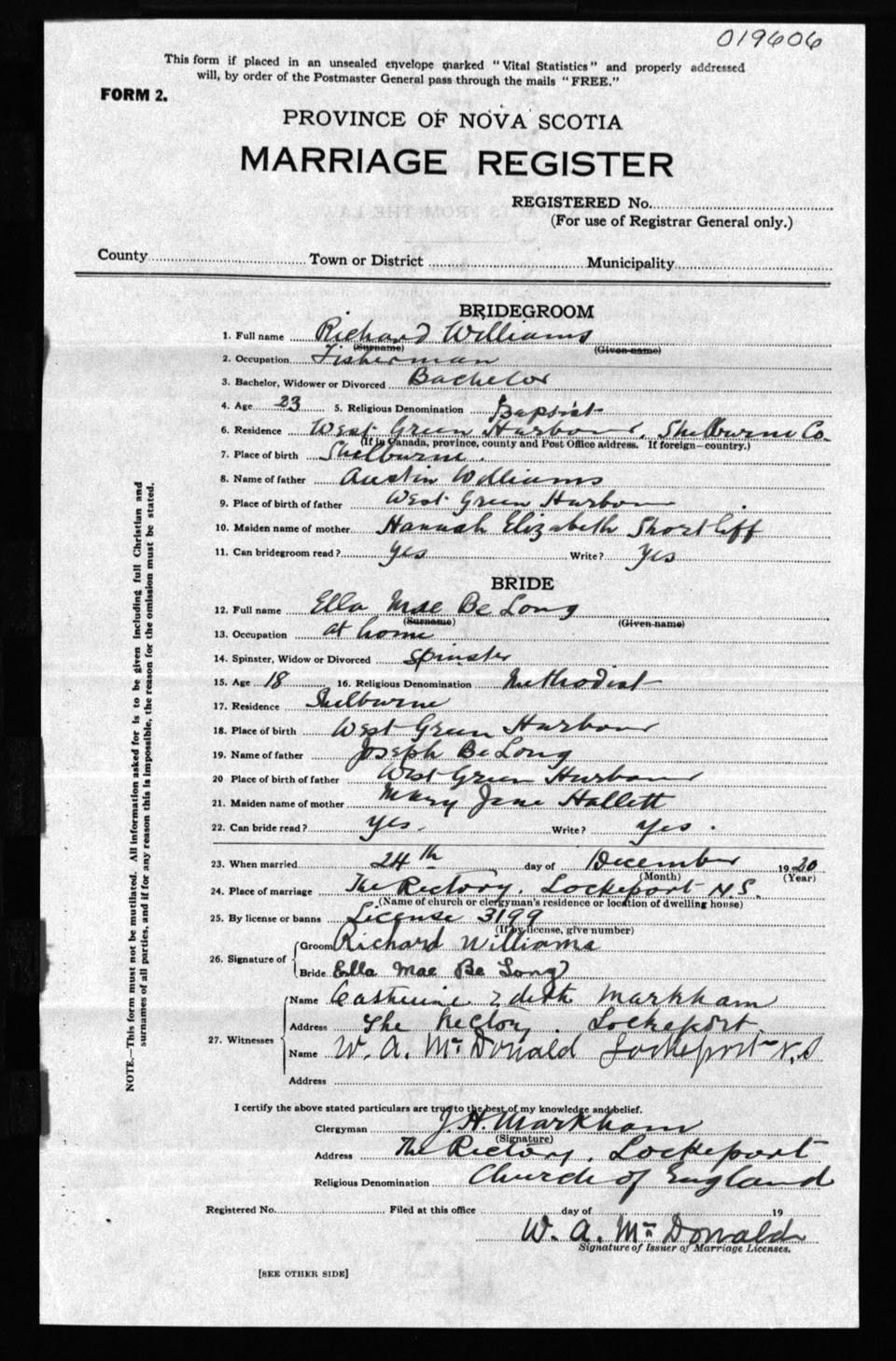 Registration: Year: 1920 number: 19606