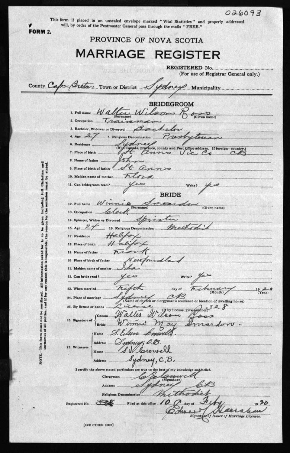 Registration: Year: 1920 number: 2693
