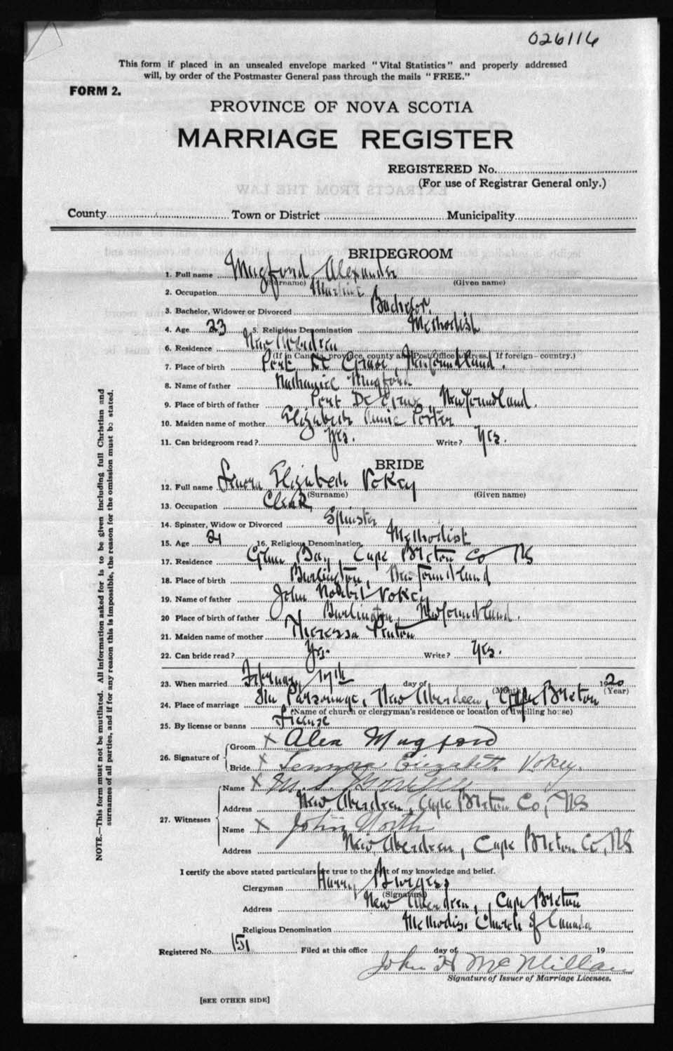 Registration: Year: 1920 number: 26116