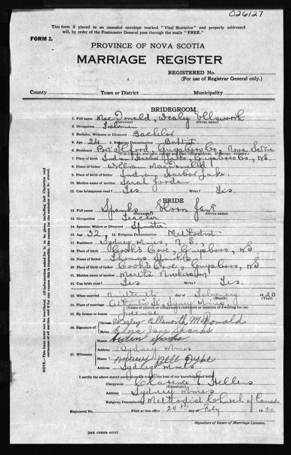 Registration: Year: 1920 number: 26127