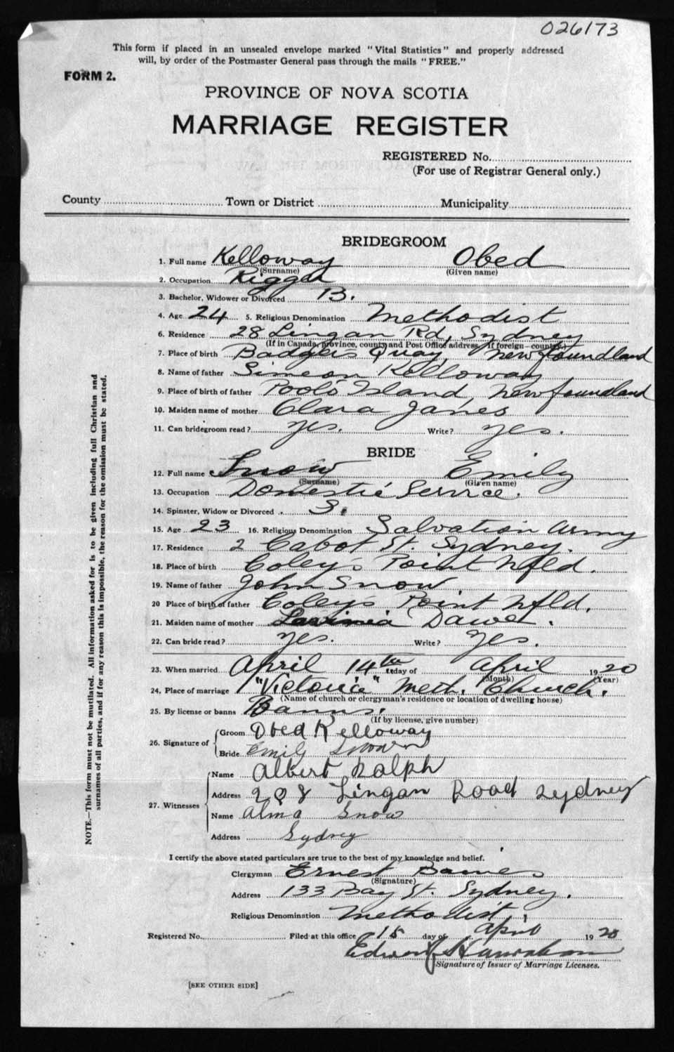 Registration: Year: 1920 number: 26173