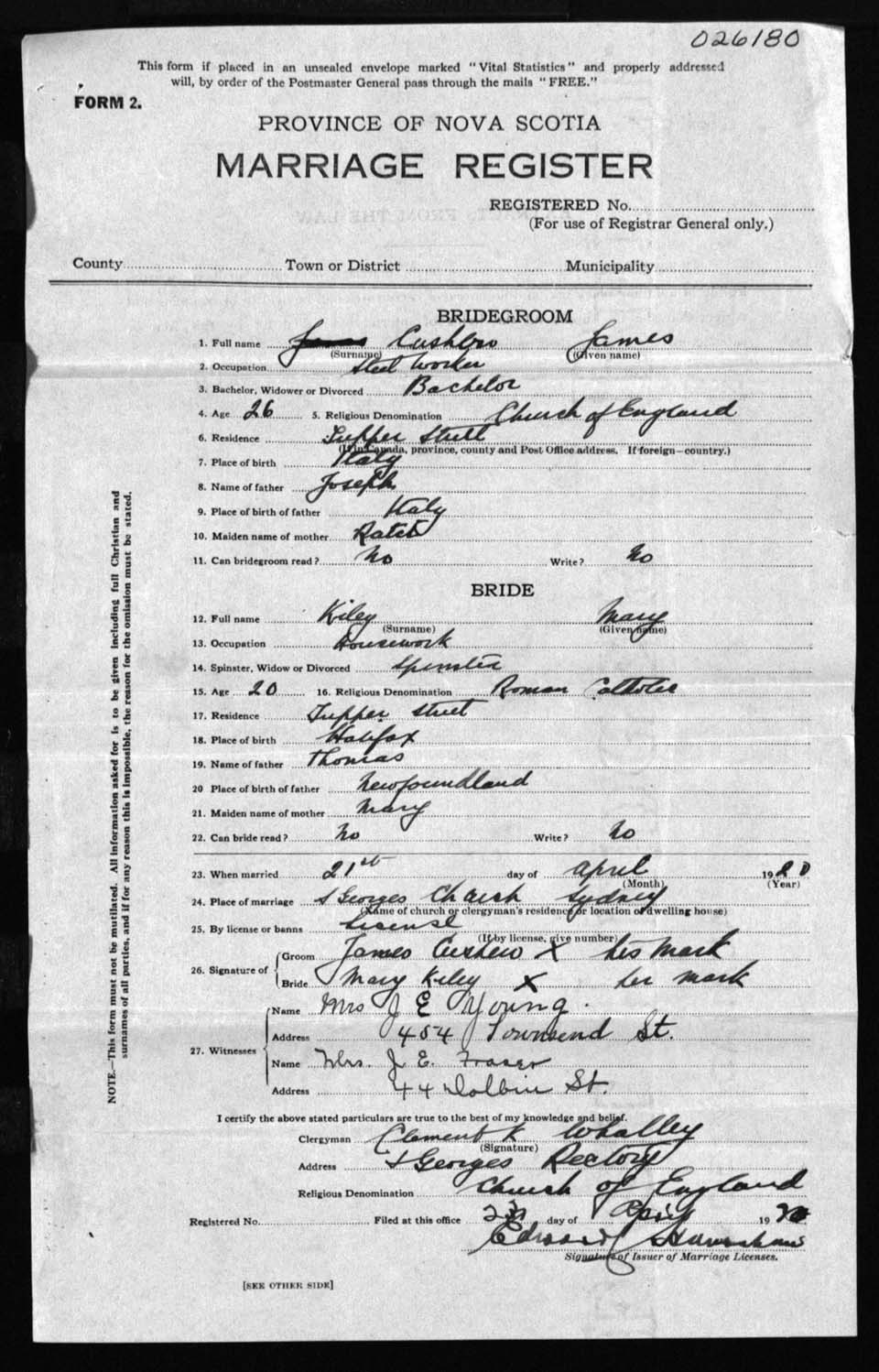 Registration: Year: 1920 number: 26180