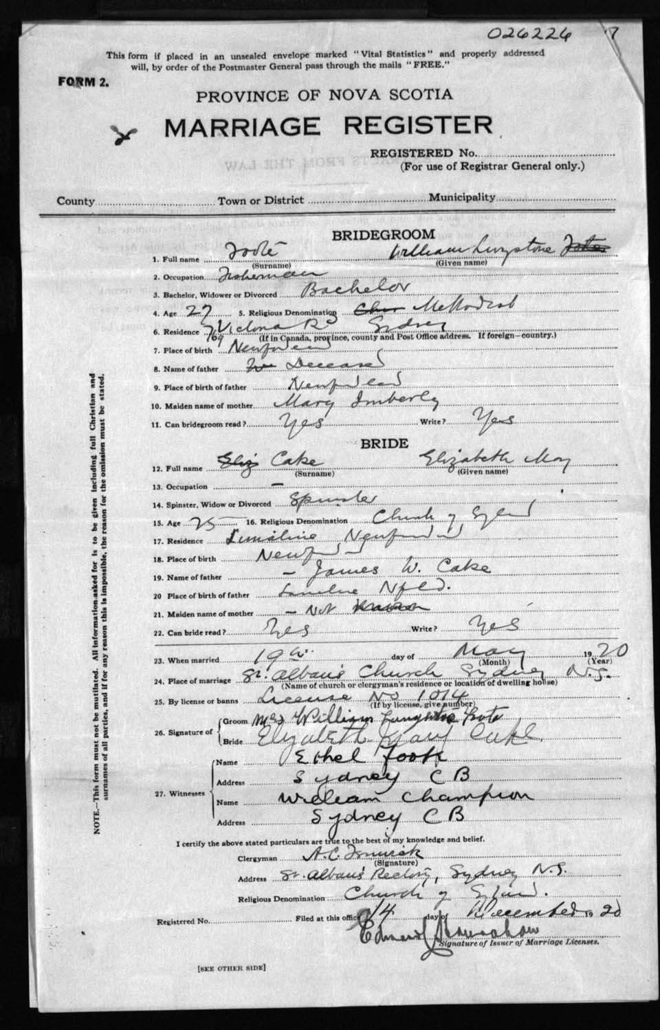 Registration: Year: 1920 number: 26226