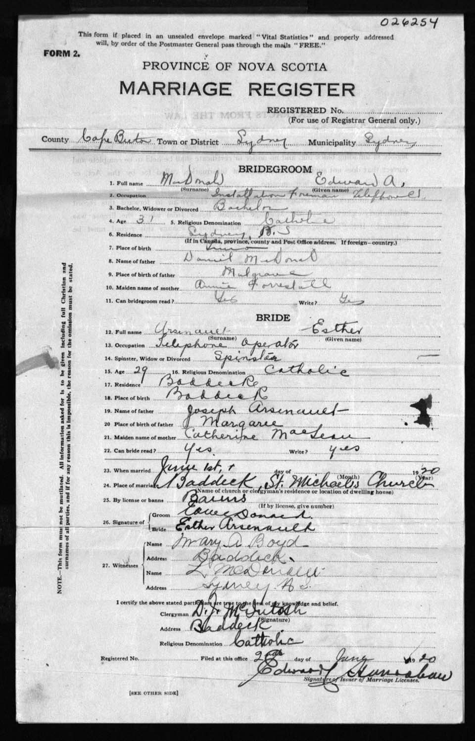 Registration: Year: 1920 number: 26254
