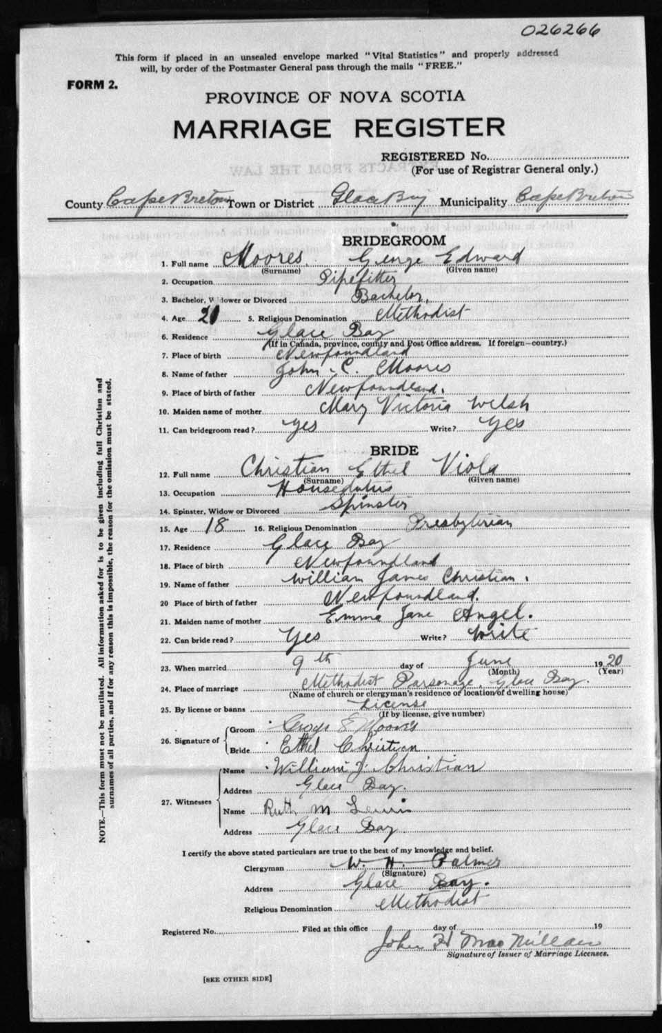 Registration: Year: 1920 number: 26266