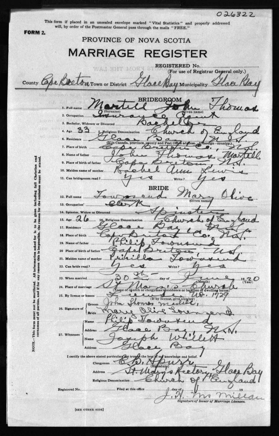 Registration: Year: 1920 number: 26322
