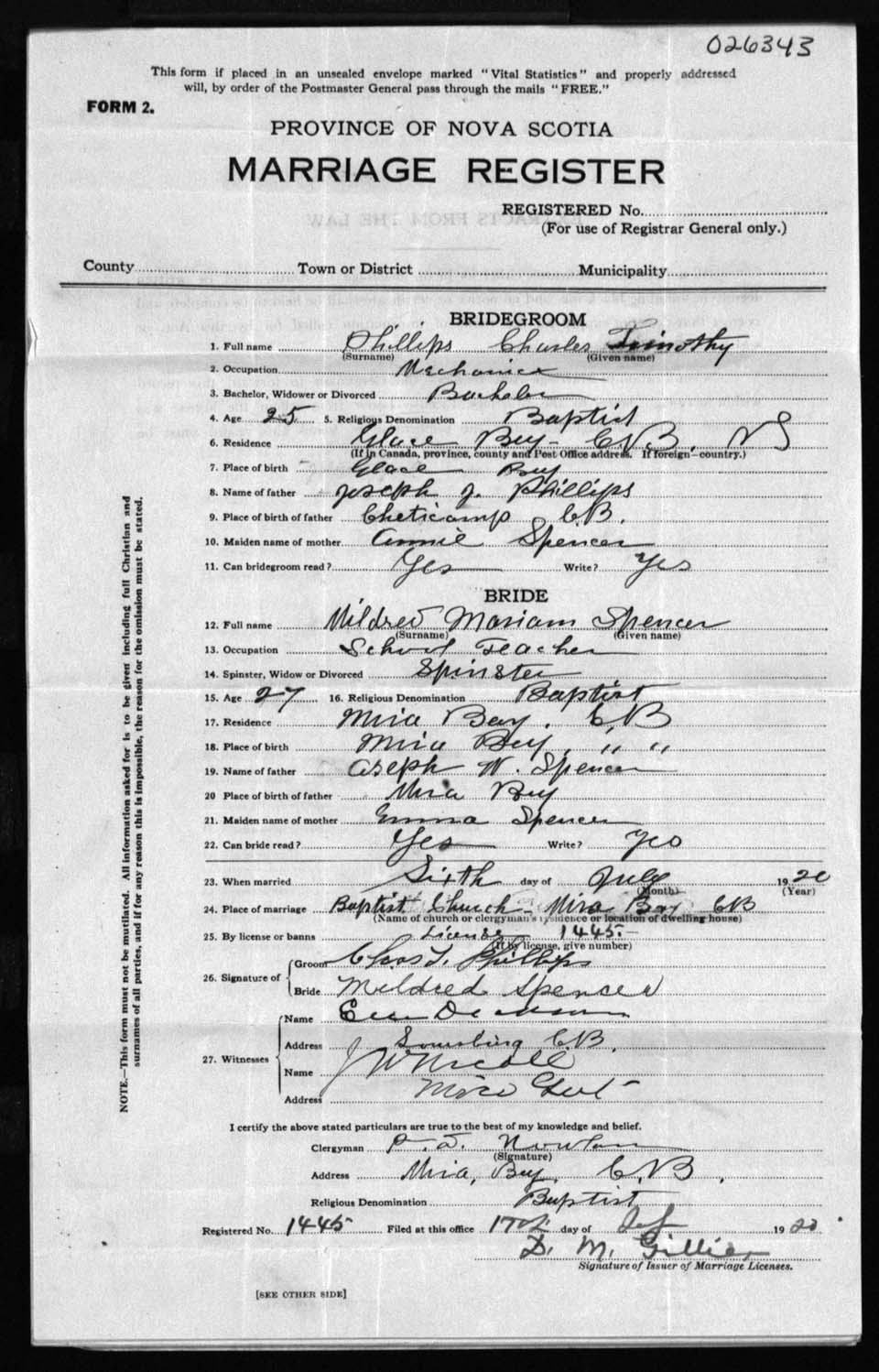 Registration: Year: 1920 number: 26343