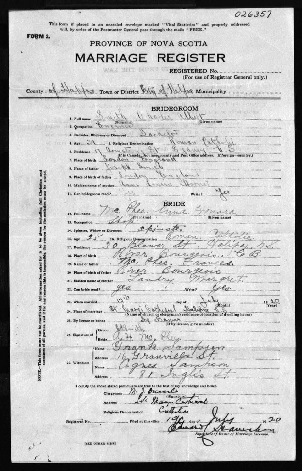 Registration: Year: 1920 number: 26357