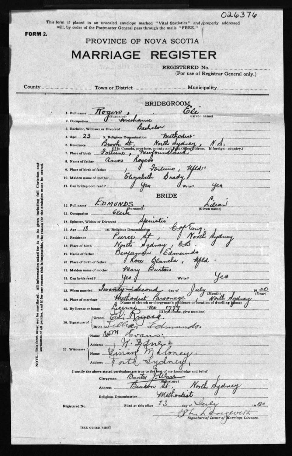 Registration: Year: 1920 number: 26376