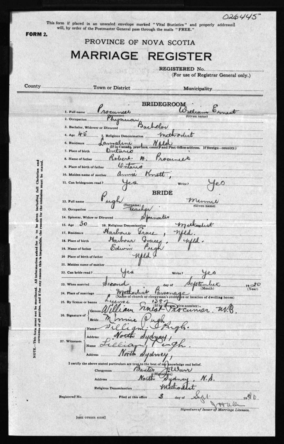 Registration: Year: 1920 number: 26445