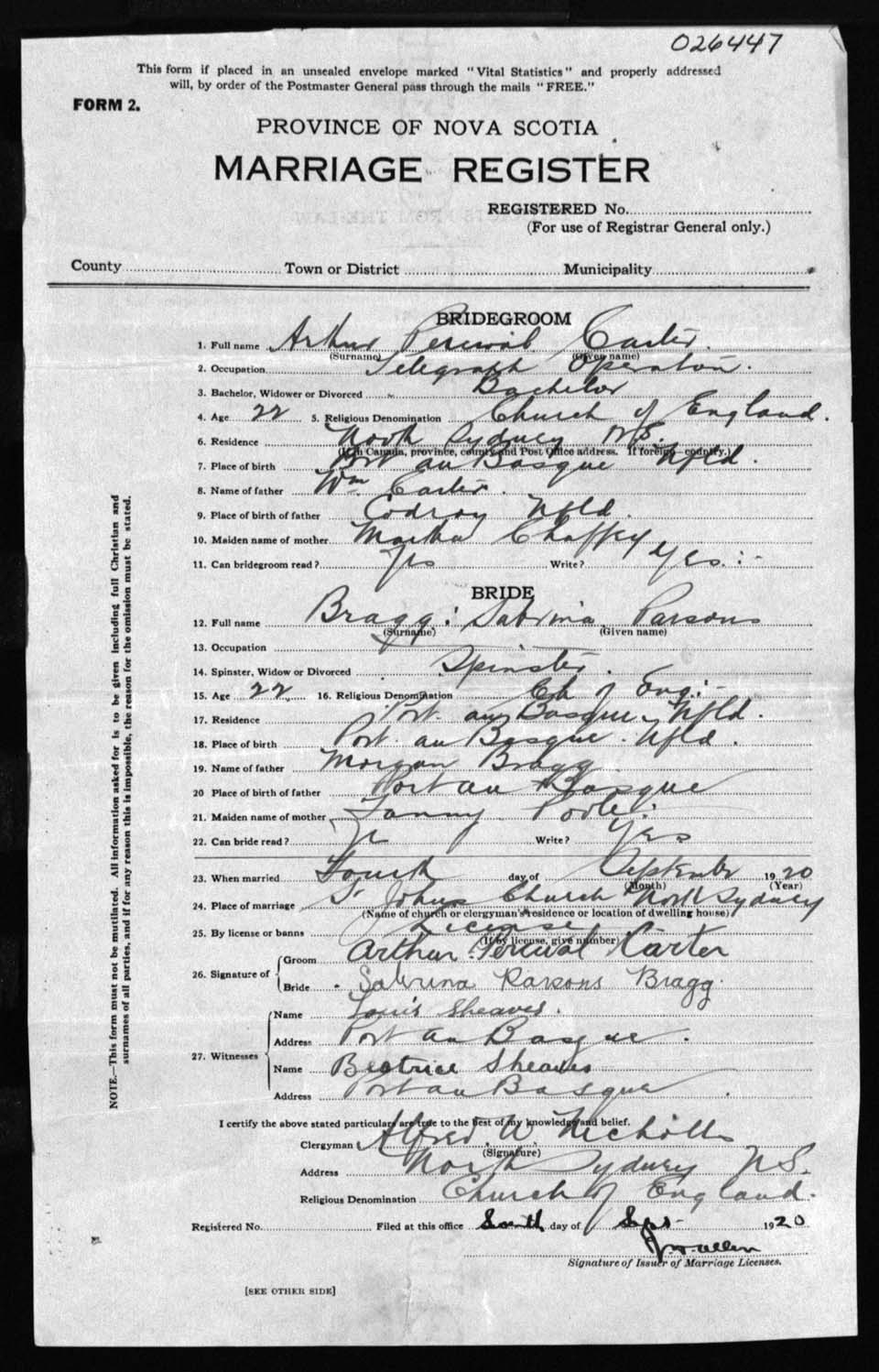 Registration: Year: 1920 number: 26447