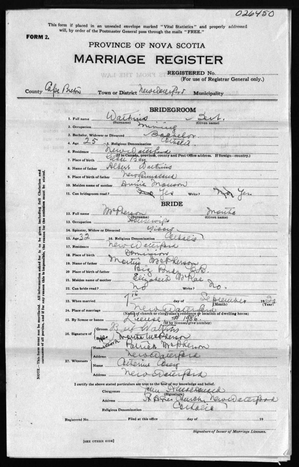 Registration: Year: 1920 number: 26450