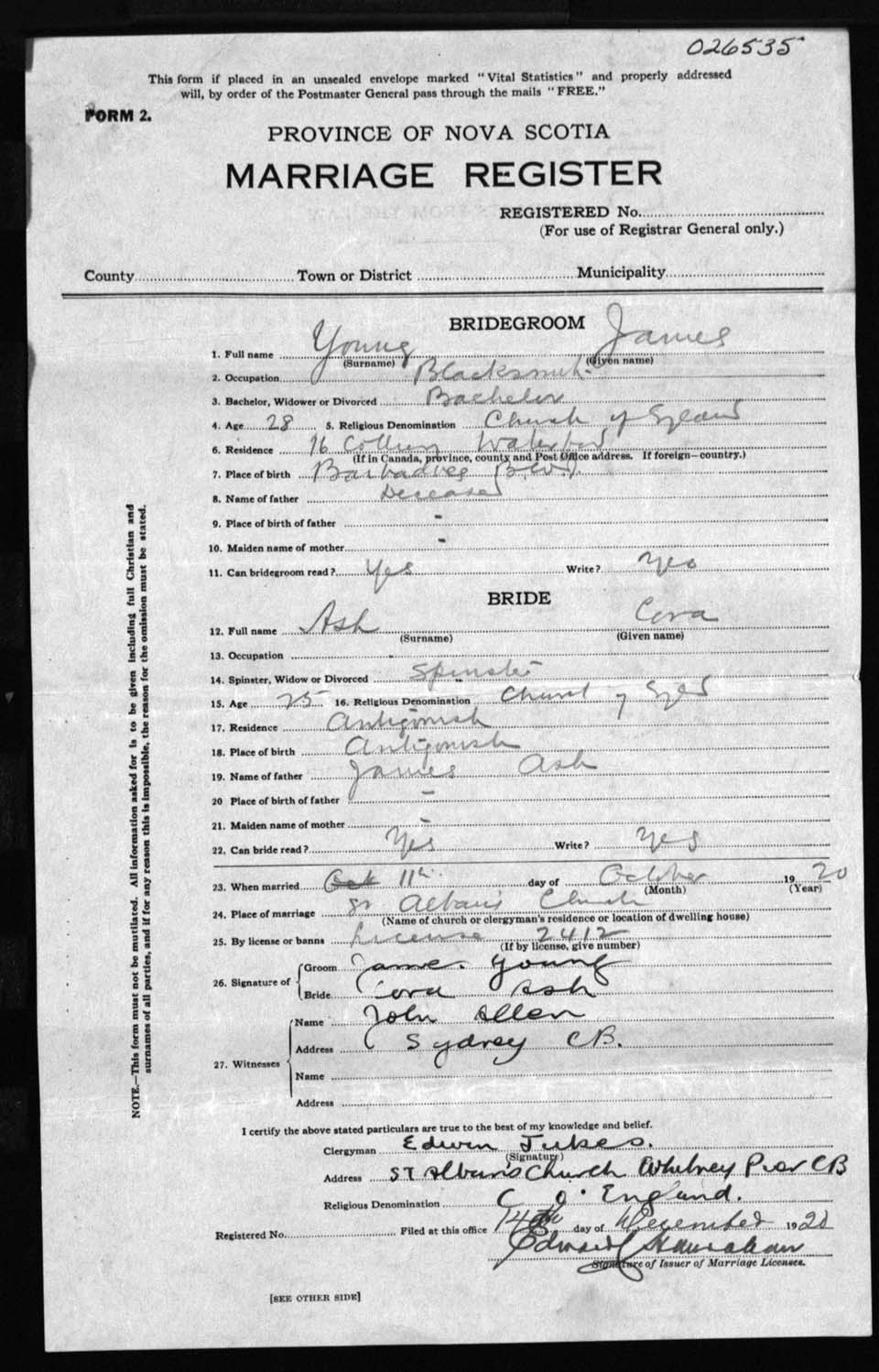 Registration: Year: 1920 number: 26535