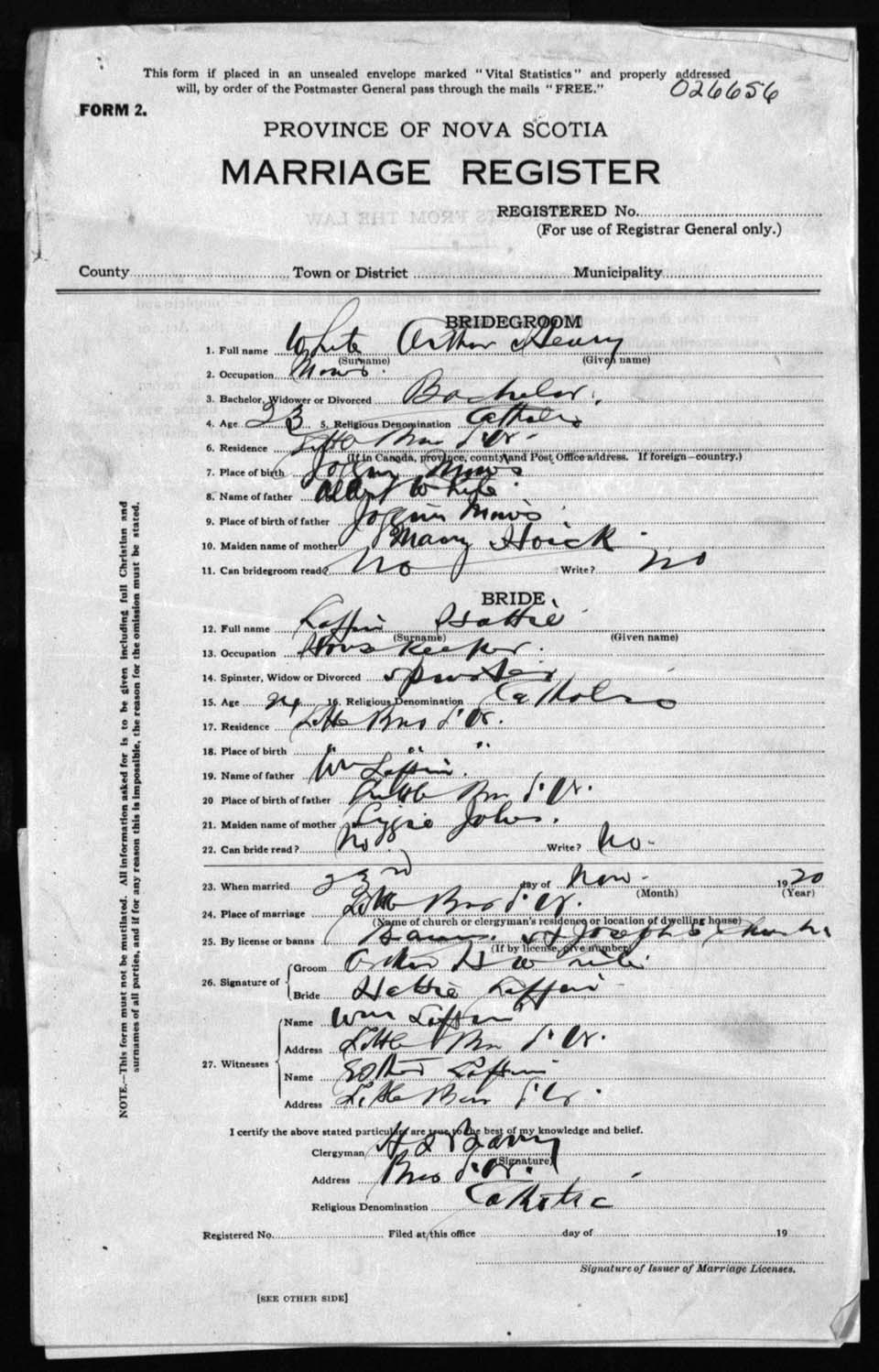 Registration: Year: 1920 number: 26656