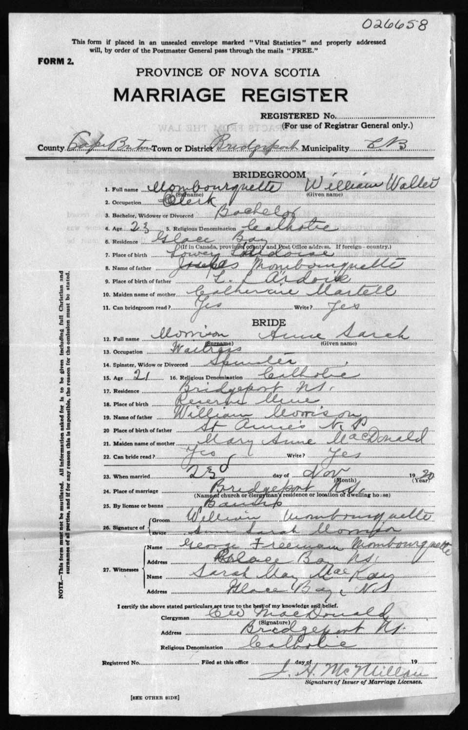 Registration: Year: 1920 number: 26658